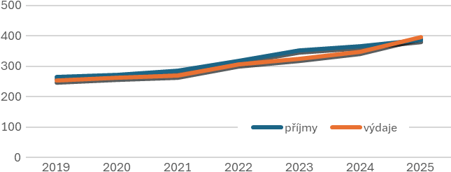 Meziročně se zvedly i neinvestiční dotace (o 2,1 mld. Kč) a kapitálové příjmy (o 1,1 mld. Kč). Jedinou položkou, která oproti roku 2024 poklesla, byly ze známých důvodů nedaňové příjmy (o 2,1 mld. Kč). I tak byly v období let 2019 a 2025 druhé nejvyšší.