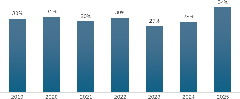 Téměř jednoznačný trend vykázala v letech 2019 až 2025 míra, v jaké obcím s financováním kapitálových výdajů pomohl stát, případně kraje. V prvních třech letech daného období byla míra této podpory vyšší než ve čtyřech posledních letech.