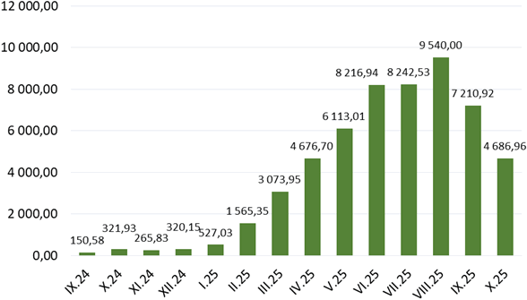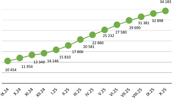 Celkový objem sdílené elektřiny od první výměny mezi účastníky v září 2024 dosáhnul ke konci října téměř 55 GWh. To odpovídá průměrné roční spotřebě 17 600 domácností. EDC eviduje celkem 34 183 účastníků, kteří do systému sdílení zaregistrovali již přes 20 000 výrobních a více než 33 000 odběrných míst. Do sdílení elektřiny je aktuálně zapojeno přes 19 000 aktivních zákazníků, 826 bytových domů a 79 tzv. energetických společenství.