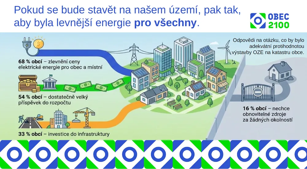 Při příležitosti vyhlášení nového ročníku soutěže OBEC 2100 prezentovalo SMS ČR výsledky aktuálního průzkumu o postojích samospráv zejména k výstavbě nových obnovitelných zdrojů energie. Průzkumu se v březnu letošního roku účastnilo 738 obcí.