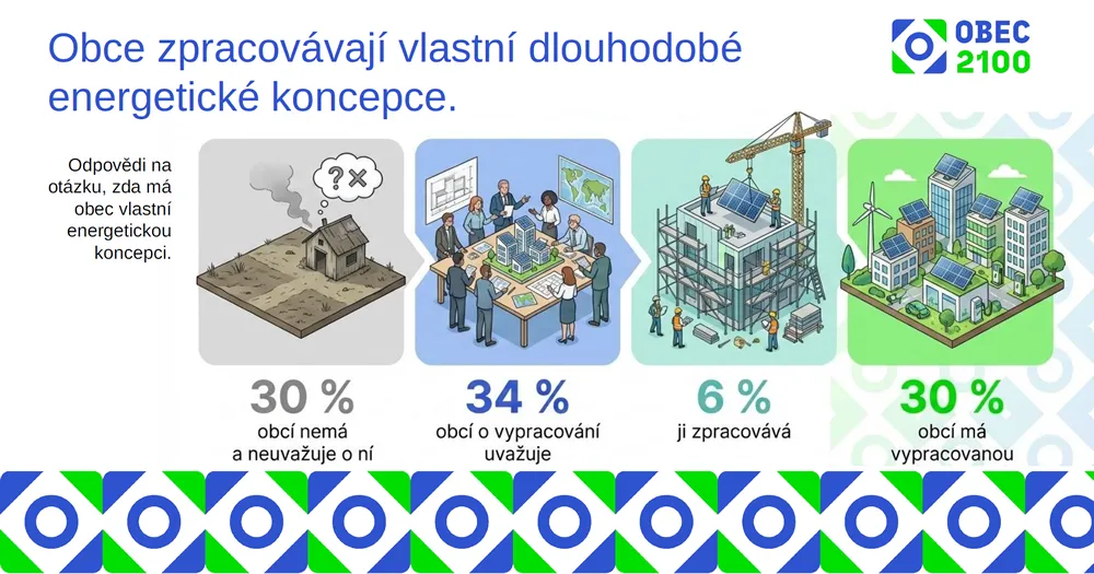 Průzkum také potvrzuje, že obce zpracovávají vlastní energetické koncepce. Tento strategický dokument má už zpracovaný 30 procent obcí a dalších 6 procent na něm aktuálně pracuje. Třetina obcí (34 %) o vypracování energetické koncepce uvažuje, zatímco 30 procent tento dokument nemá a zatím ho neplánuje vypracovat.