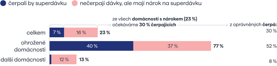 Skupina je pojmenována „ohrožené domácnosti“. I mezi těmito domácnostmi se očekává, že superdávku bude pobírat jen 52 %.